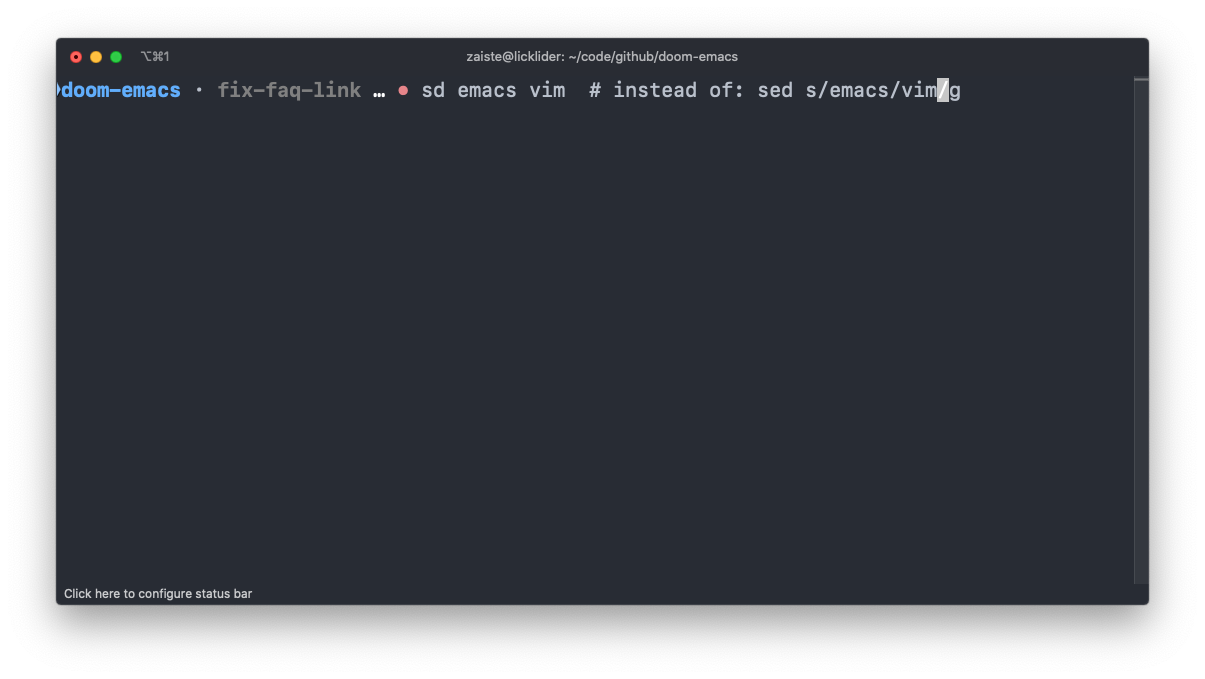 sd uses regex syntax that you already know from JavaScript and Python. Forget about dealing with quirks of sed or awk - get productive immediately.